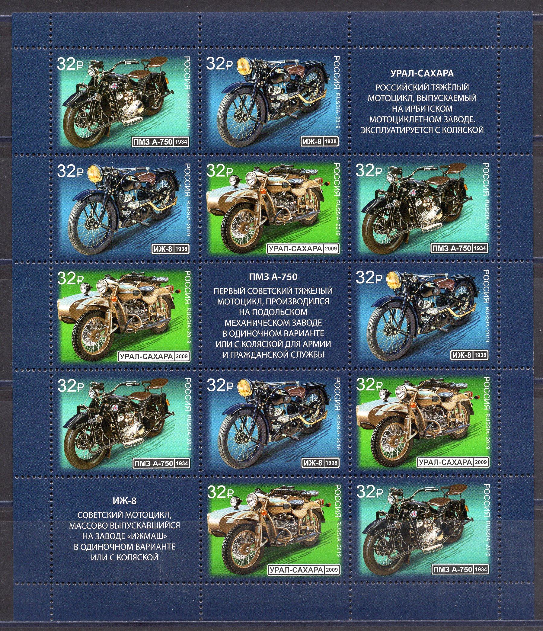 Почтовые марки. Россия. 2019г. Мотоциклы. №2502-2504.