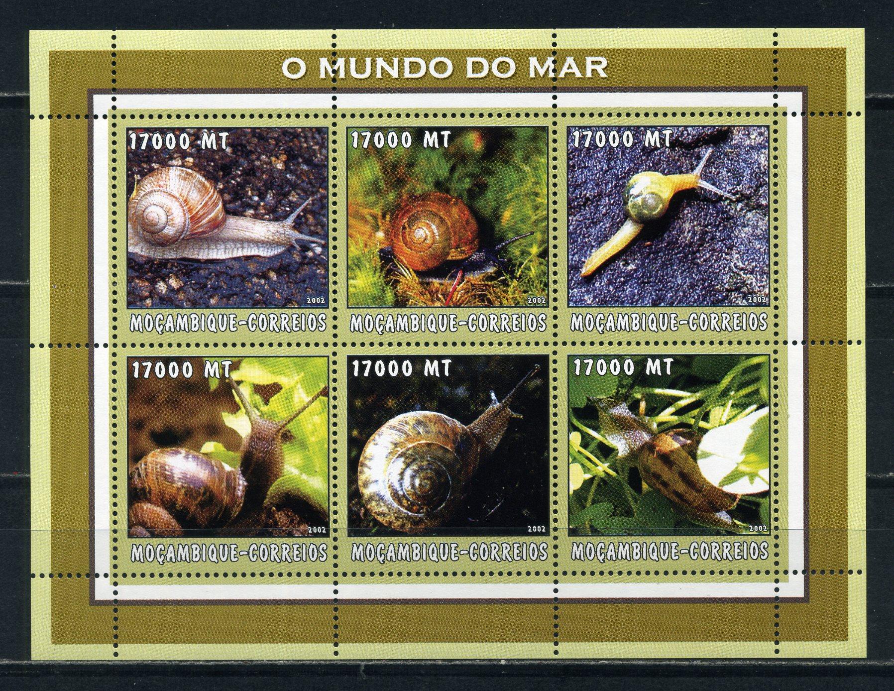 Почтовые марки. Мозамбик. 2002г. Улитки и слизни. №2596-2601.