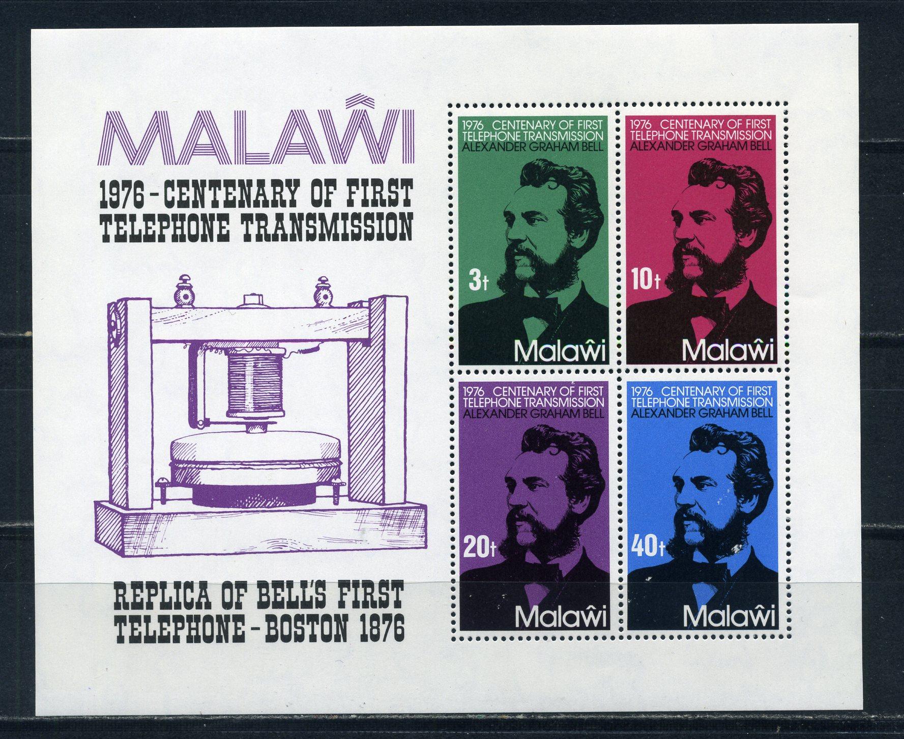 Почтовые марки. Малави. 1976г. Первый телефон. Блок №43.
