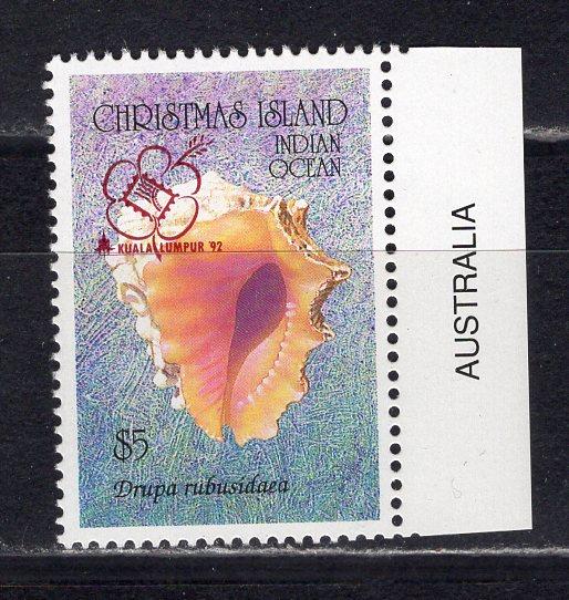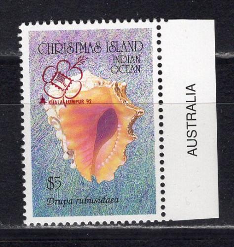 Почтовые марки. О-в Рождества. 1992г. Ракушка. Надпечатка Куала-Лумпур. №373.