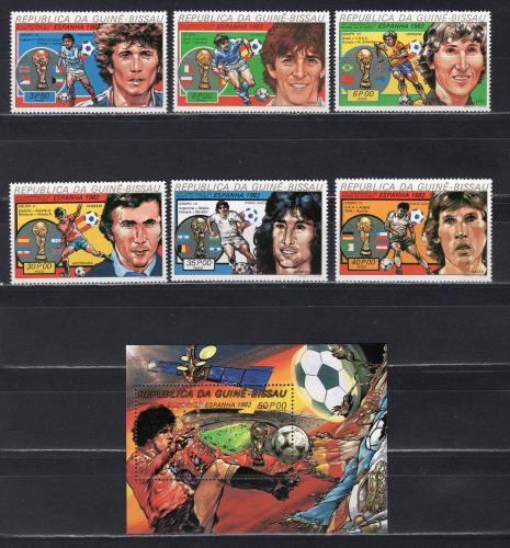 Почтовые марки. Гвинея-Биссау. 1982г. Футбол. №623-628. Блок №222 (Mi: 21.00 Евро)