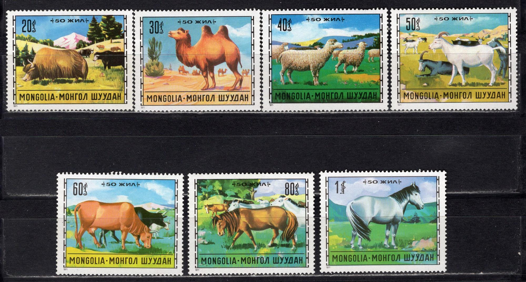 Почтовые марки. Монголия. 1971г. Домашние животные. №660-666.