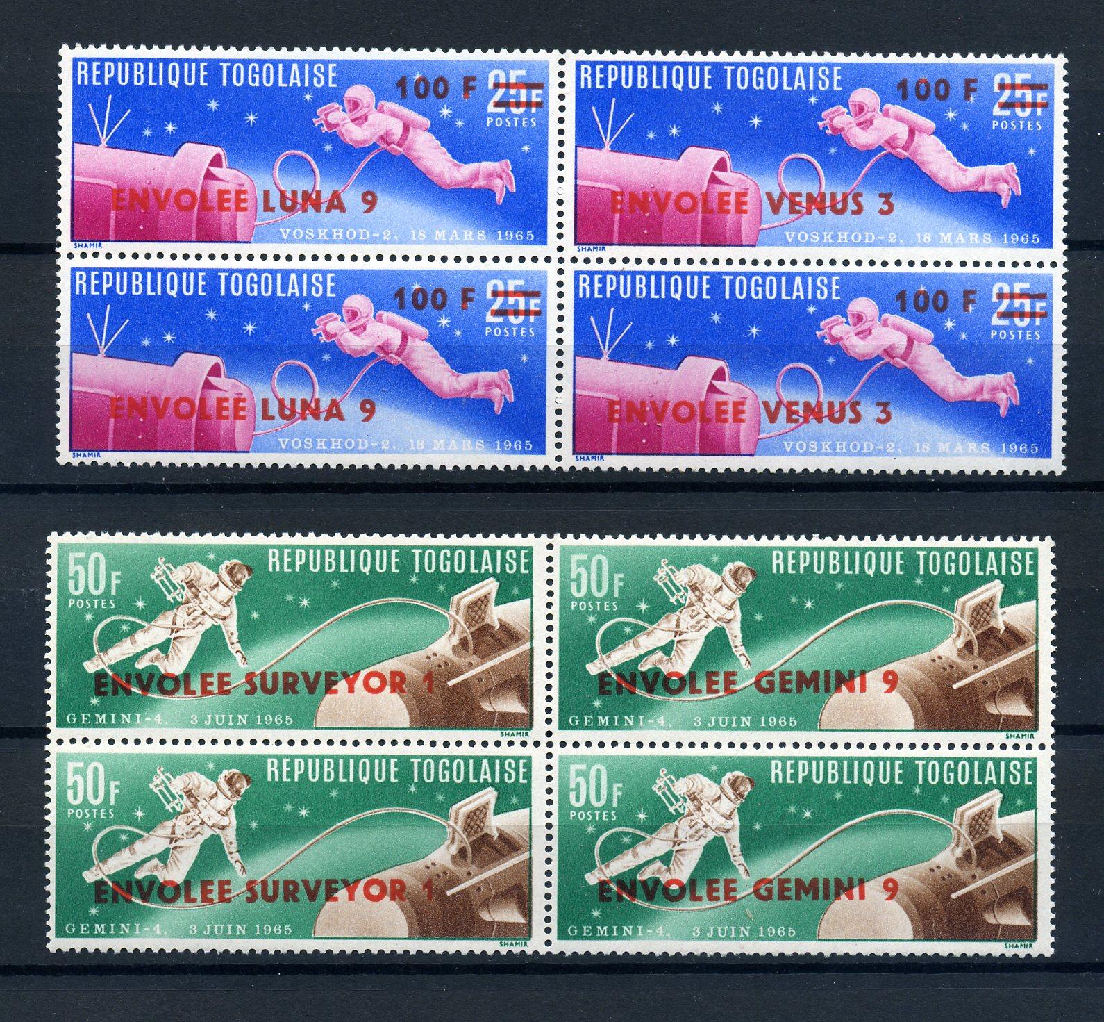 Почтовые марки. Того. 1966г. Космос. №513-516. Светлая. Надпечатка. КБ. (Mi: 14.00 Евро)
