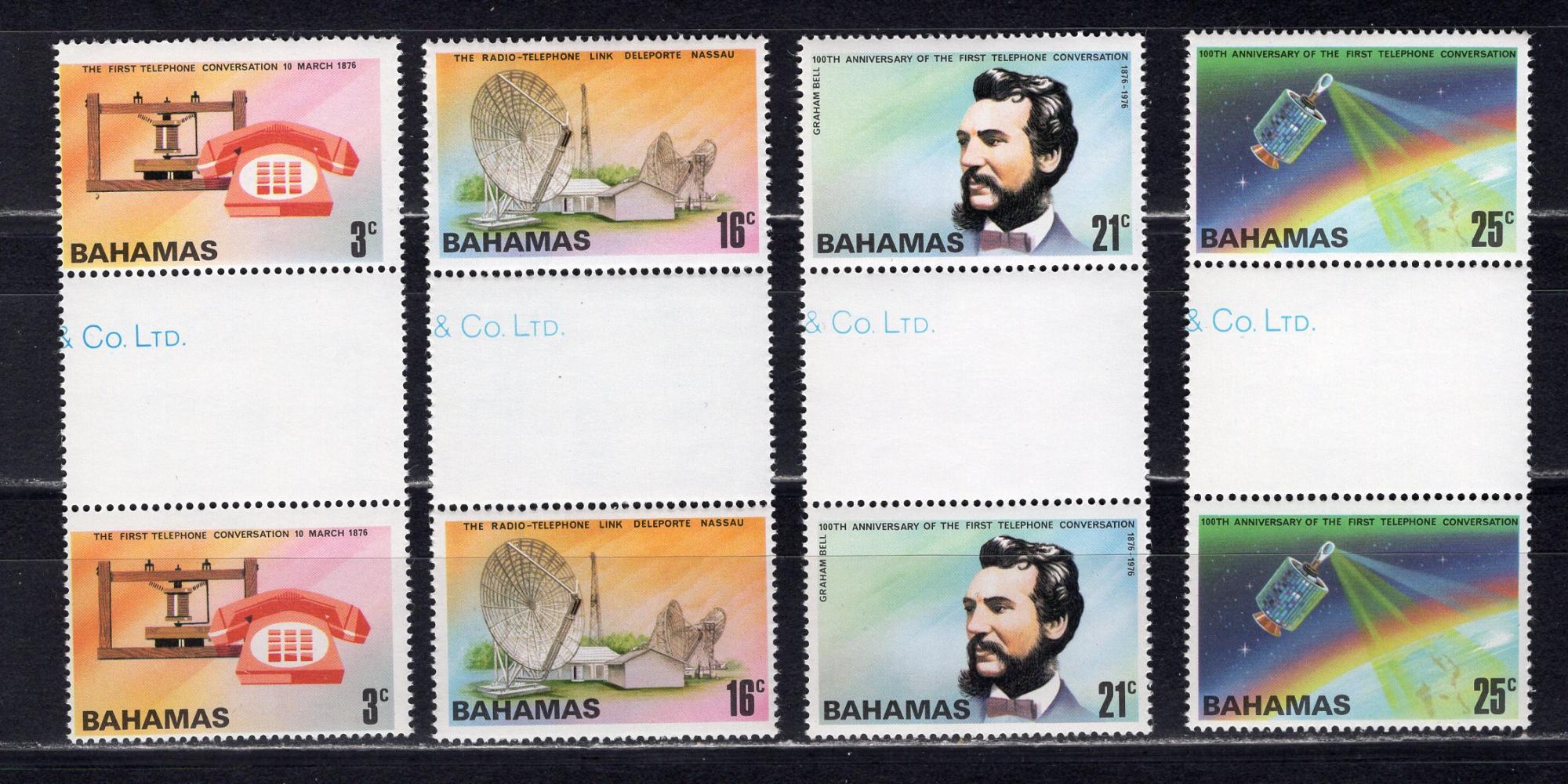 Почтовые марки. Багамы. 1976г. Первый телефон. Космос. №392-395. Гаттер-пары.