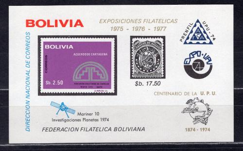 Почтовые марки. Боливия. 1975г. Филвыставка. ВПС. Космос. Блок №53в. Беззубц.