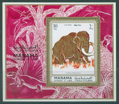 Почтовые марки. Манама. 1971г. Доисторические животные. Блок №135 (Mi: 8.00 Евро)