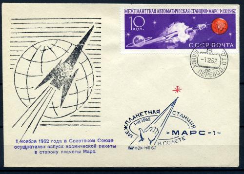 Конверт с маркой и СГ. СССР 1962 г. Межпланетная станция "Марс-1". КО.