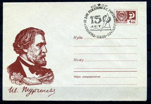 ХМК со СГ. СССР 1968 г. 150 лет со ДР И.С. Тургенева. КО. (кат.250 р).