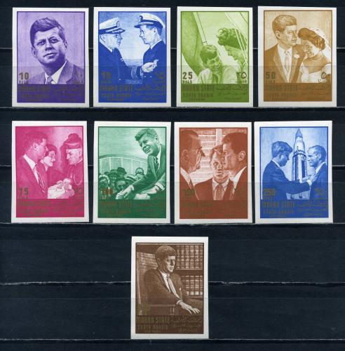 Почтовые марки. Аден Mahra St. 1967г. Президент Кеннеди. №16в-24в. Беззубц.