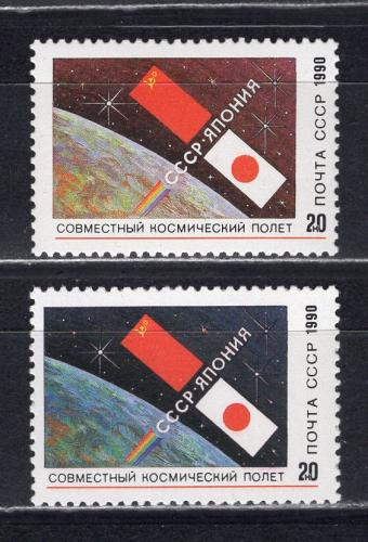 Почтовые марки. СССР. 1990г. Бордовый Космос. Разновидность- цвет. №6273.