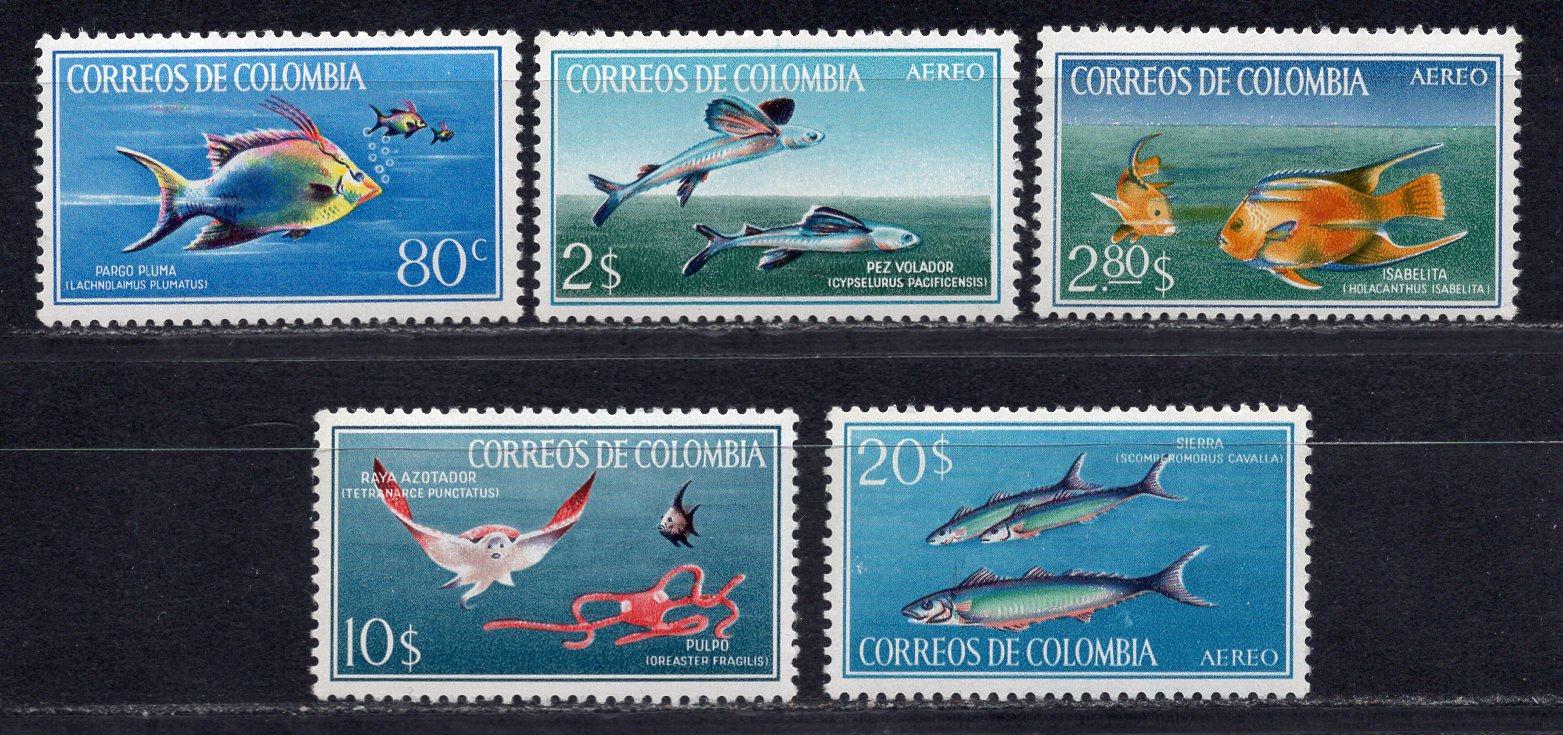 Почтовые марки. Колумбия, 1966 г. № 1078-1082. Рыбы.