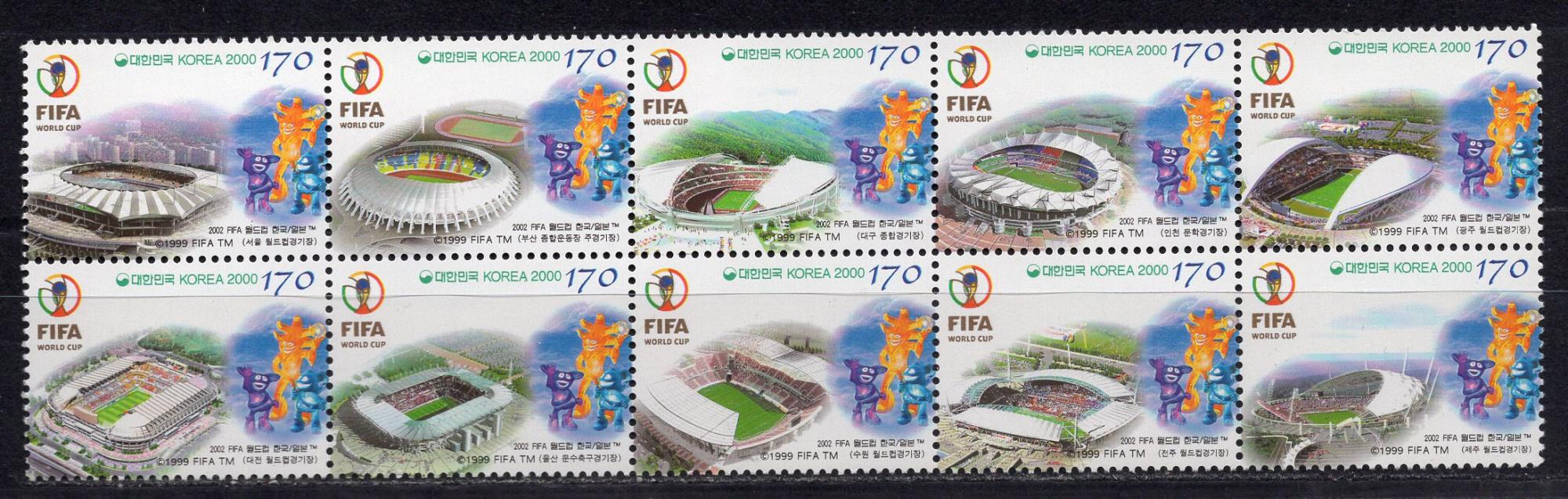 Почтовые марки. Южная Корея, 2000 г. №2132-2141. Футбол. Стадионы.