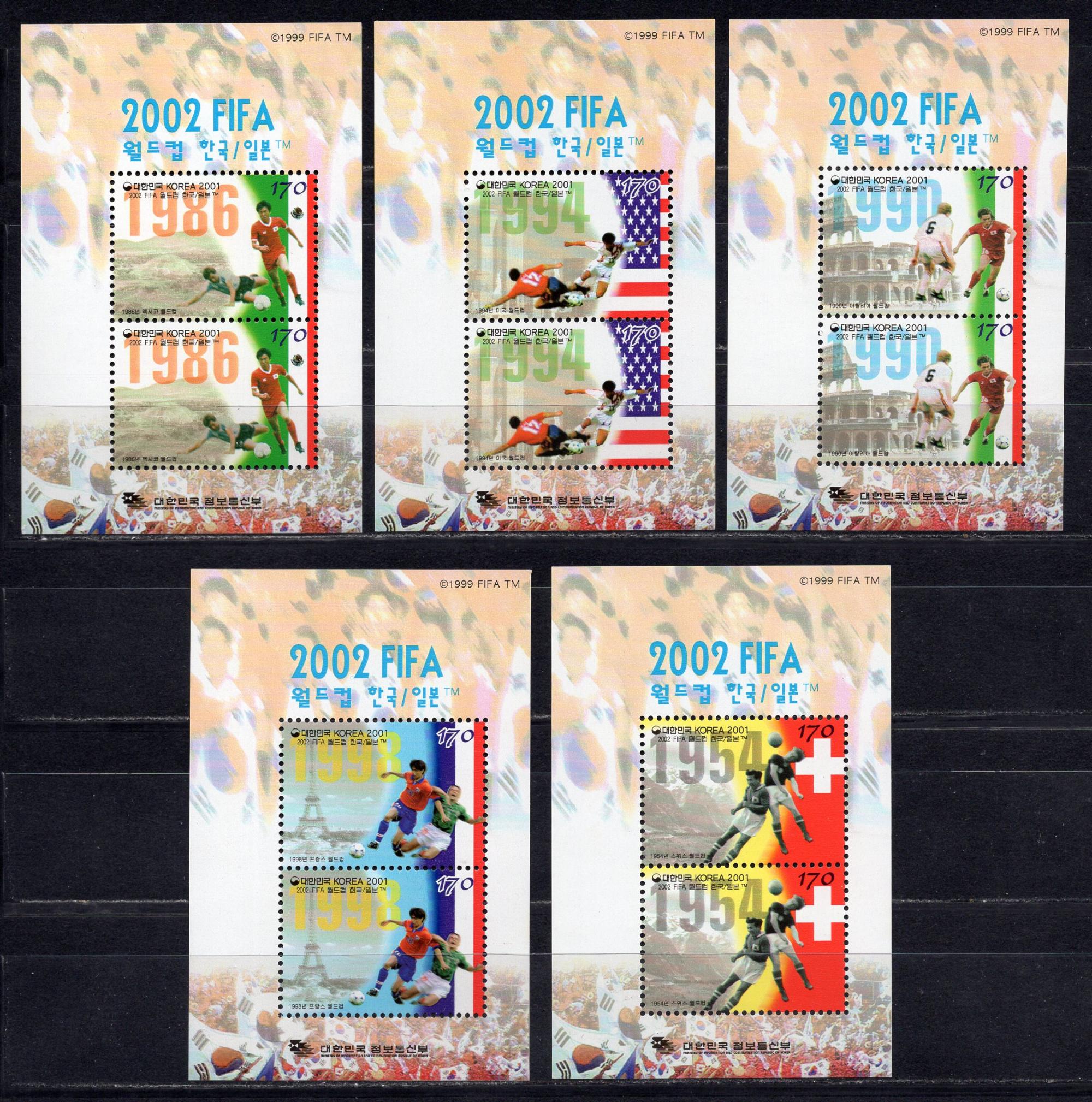 Почтовые марки. Южная Корея, 2001 г. Бл. 696-700. Футбол.