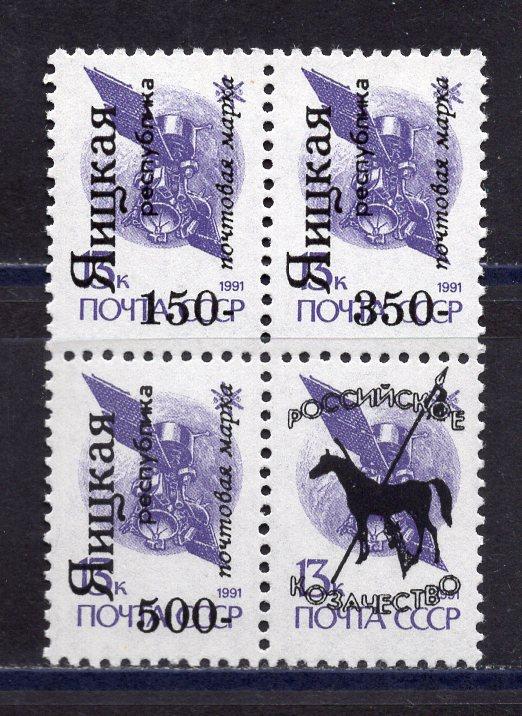 Почтовые марки. Россия. 1994г. Локальный выпуск. Яицкая республика. Надпечатка на марках СССР. КБ.