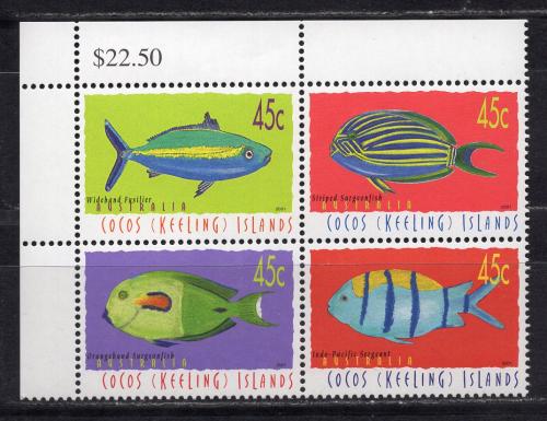 Почтовые марки. Кокосовые о-ва, 2001 г. №404-407. Сцепка. Рыбы.