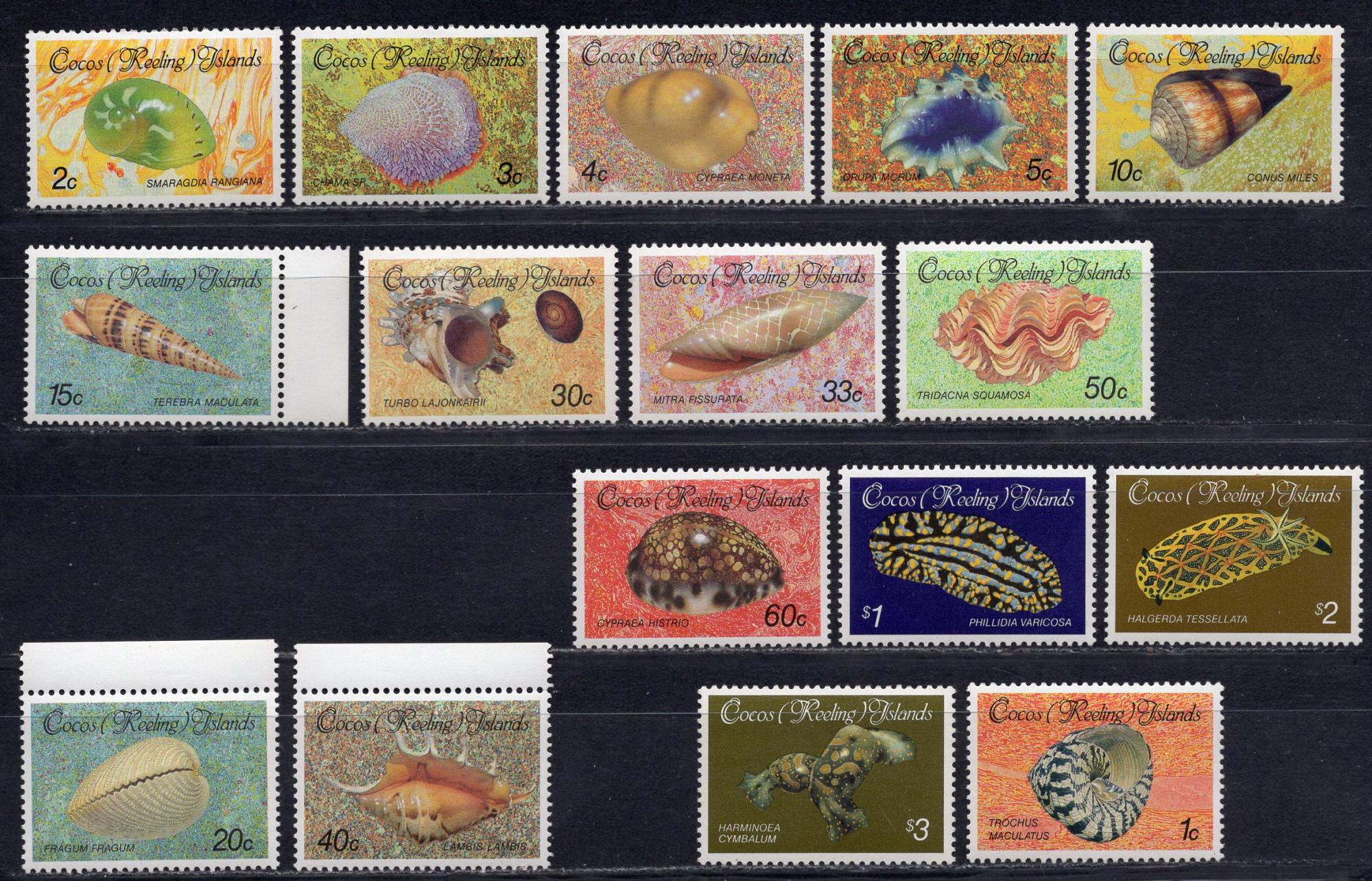 Почтовые марки. Кокосовые о-ва, 1985 г. №140-155. (Mi 24.0 e) Ракушки.