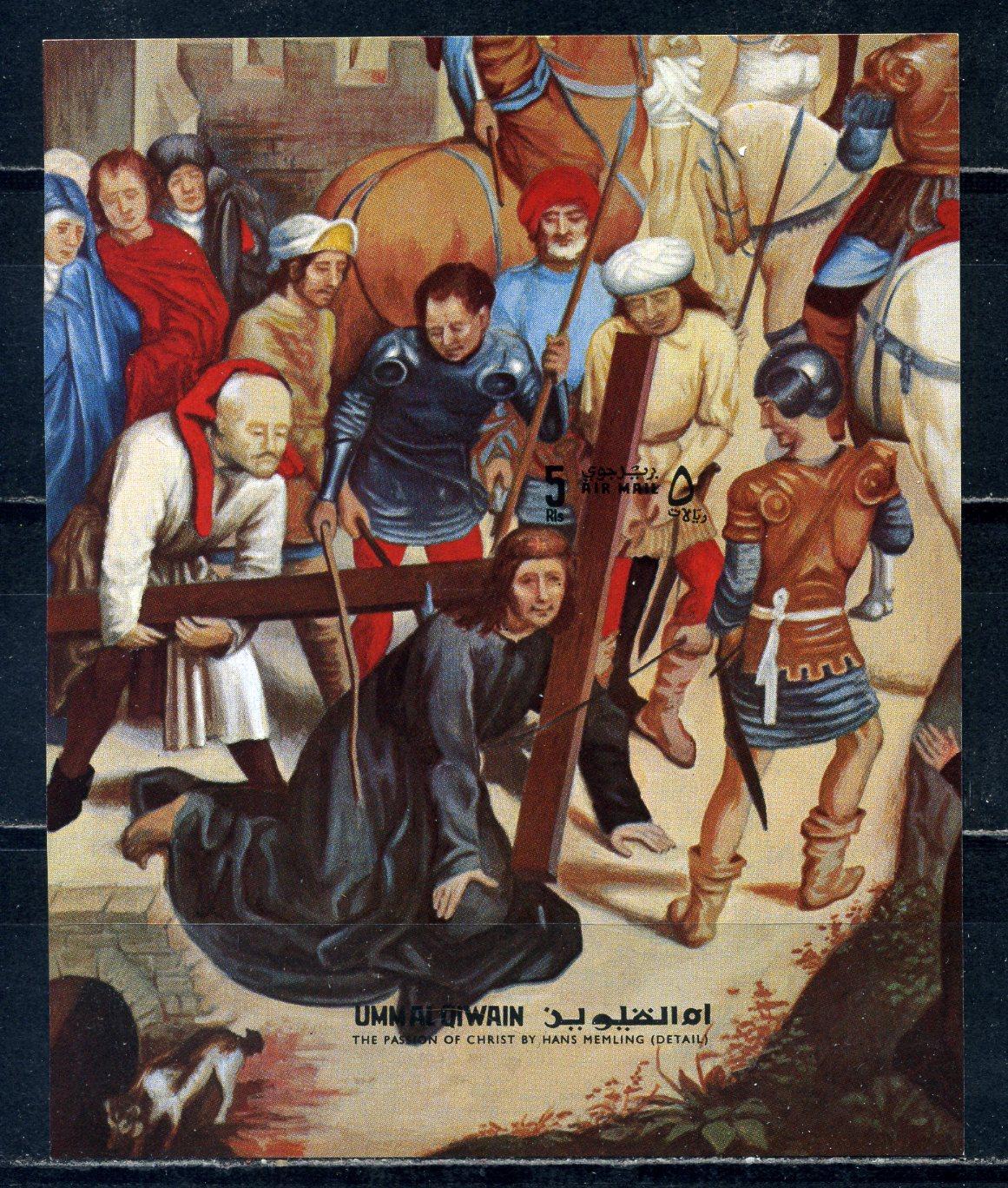 Почтовые марки. Умм-эль-Кайвайн. 1972г. Живопись. Ганс Мемлинг. Блок №39в. Беззубц.