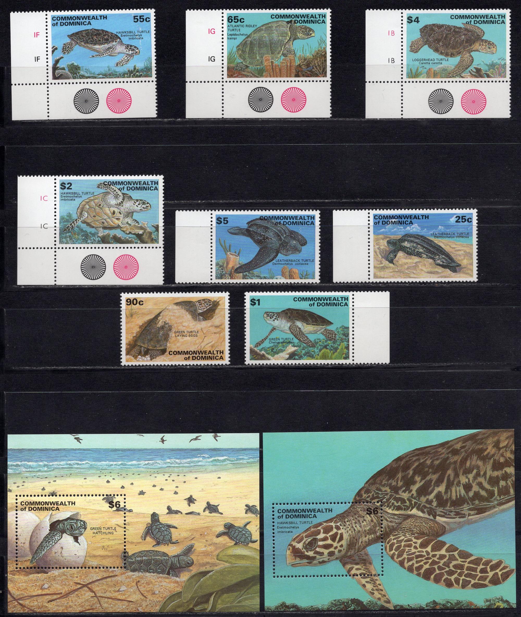 Почтовые марки. О. Доминика, 1993 г. №1677-84, Бл. 232, 233. (Mi 29.0 e) Черепахи.