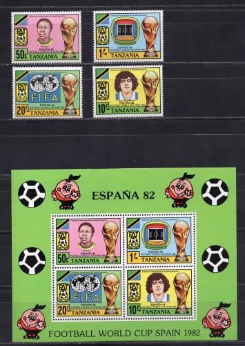 Почтовые марки. Танзания, 1982 г. MiNr. 197 - 200, Бл. 27. Футбол. (Mi 26.0 e)