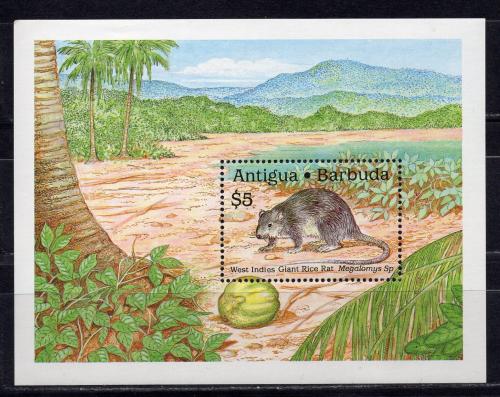 Почтовые марки. Антигуа и Барбуда, 1989 г. Бл. 164. Барбудская гигантская рисовая крыса.