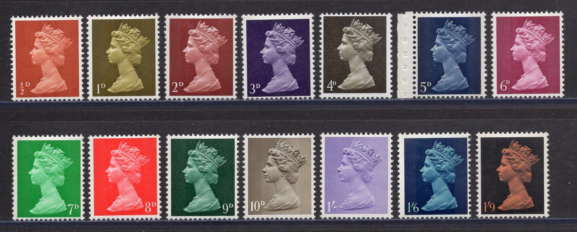 Почтовые марки. Великобритания. 1967г. Стандарт. Королева Елизавета II. №452-465.