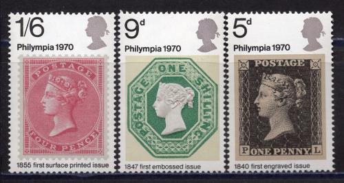 Почтовые марки. Великобритания. 1970г. Филимпия 70 — выставка марок. Марки на марках. №555-557.