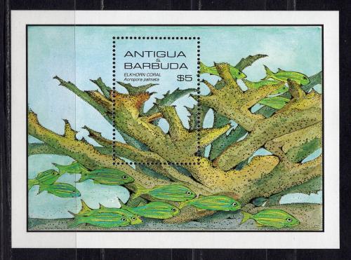 Почтовые марки. Антигуа и Барбуда, 1985 г. Бл. 97. Кораллы. Рыбы.