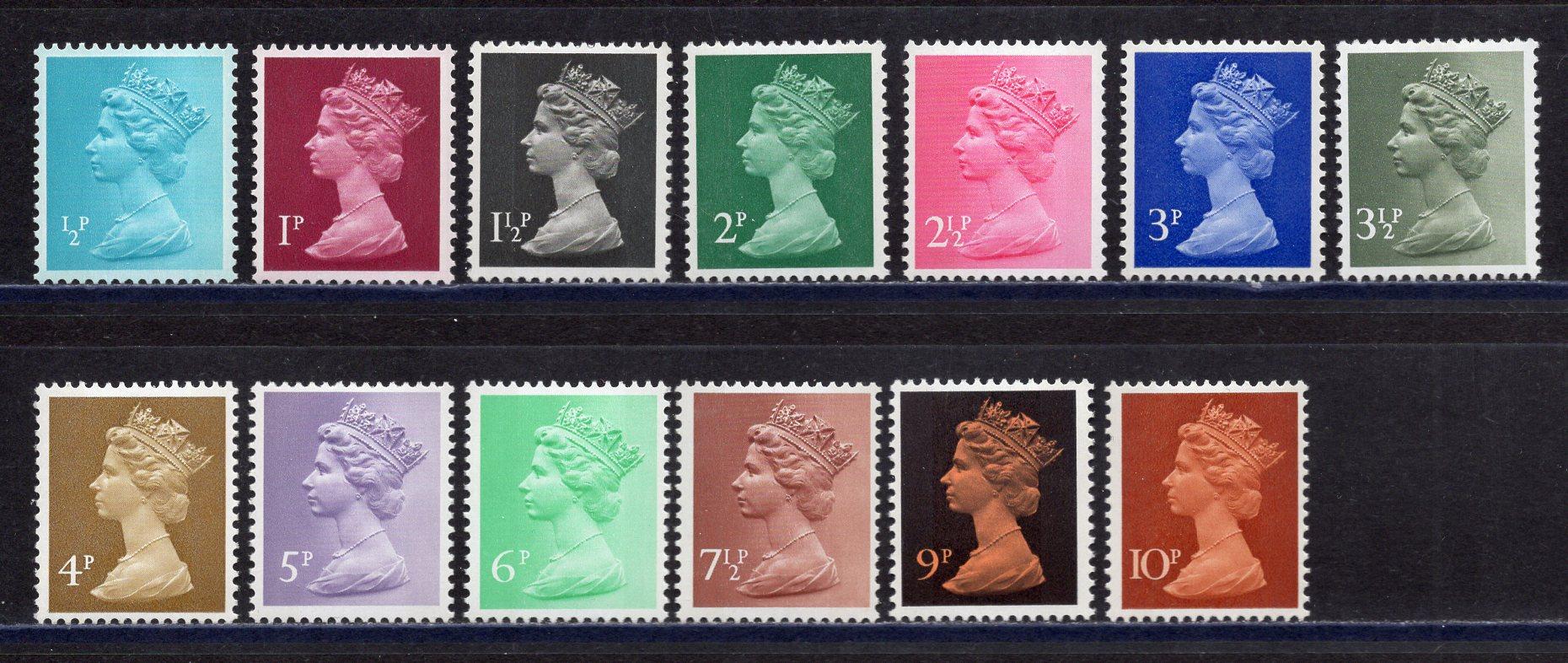 Почтовые марки. Великобритания. 1971г. Стандарт. Королева Елизавета II. №561-573.