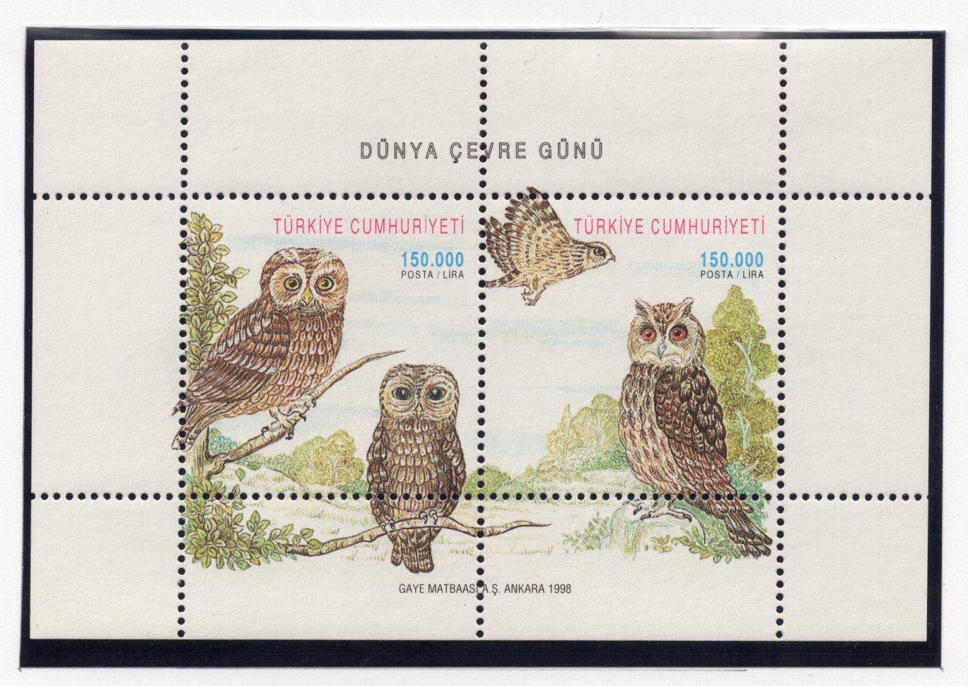 Почтовые марки. Турция, 1998 г. Бл. 35. Международный день окружающей среды – Совы.