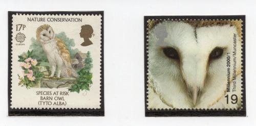 Почтовые марки. Великобритания, 1986 г., 2000 г. №1068, 1844. Совы.