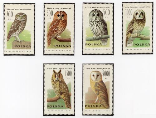 Почтовые марки. Польша, 1990 г. №3294-99. Совы.