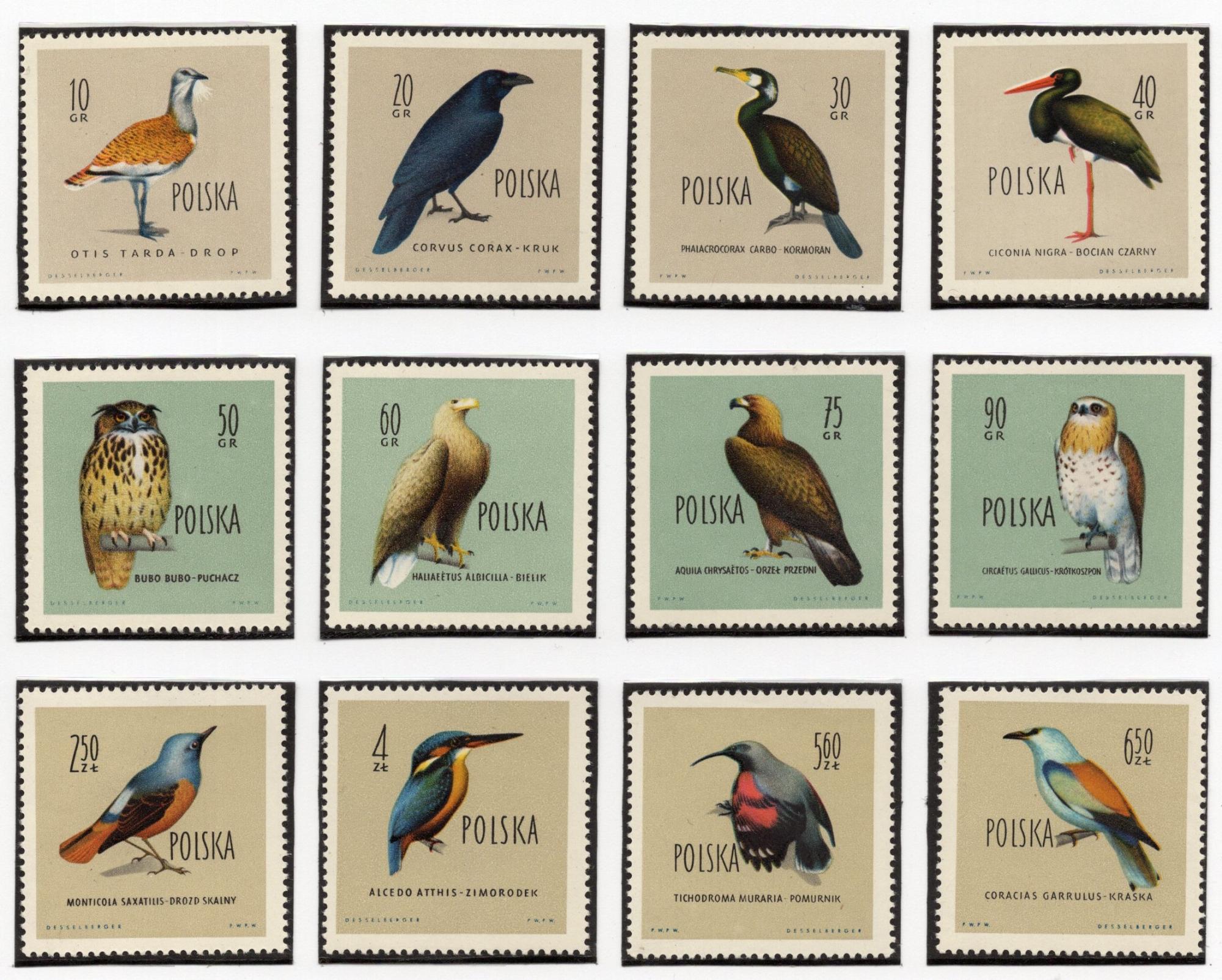Почтовые марки. Польша, 1960 г. №1197-1208. Птицы. (Mi 30.0 e)