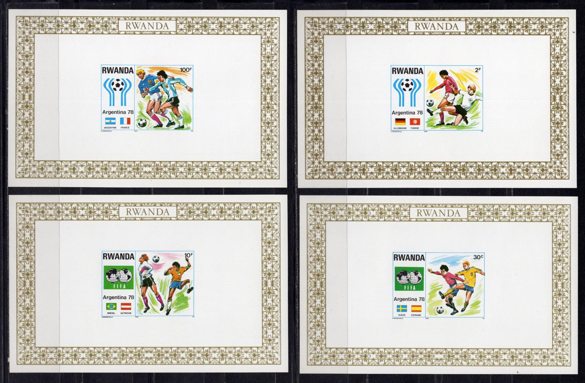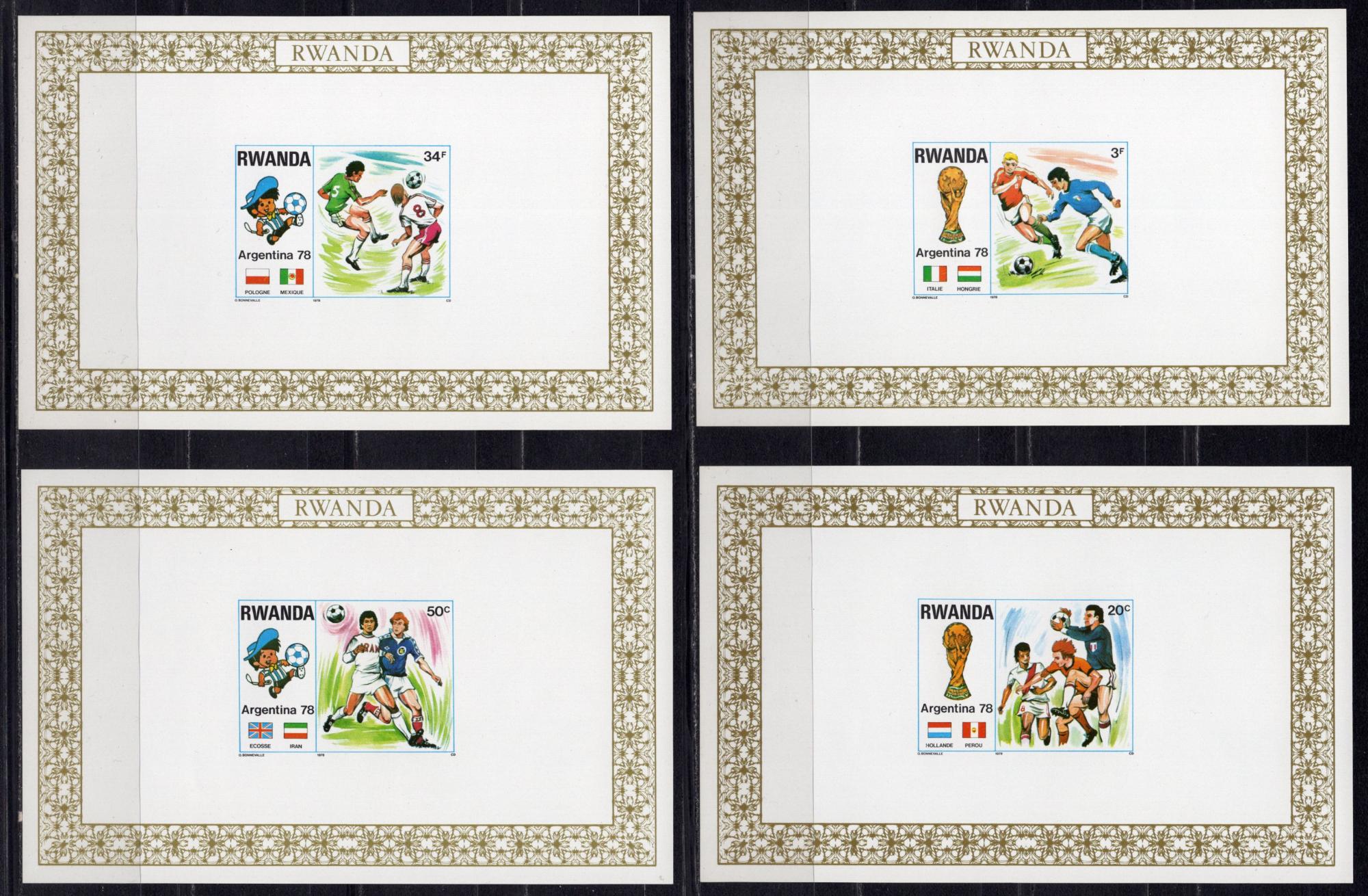 Почтовые марки. Руанда, 1978 г. №944-951. Люкс-блоки. Футбол.
