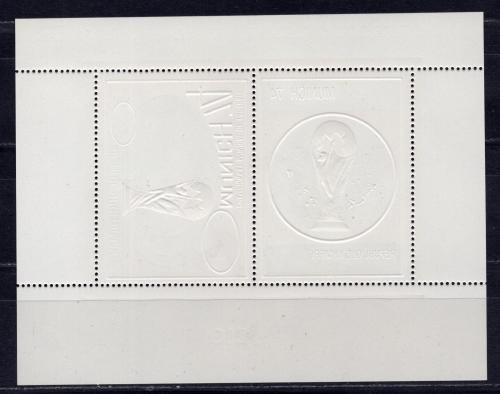 Почтовые марки. Камбоджа, 1973 г. Бл. 36. Чемпионат мира по футболу, ФРГ. Фольга. Золото. (Mi 100,00 €)