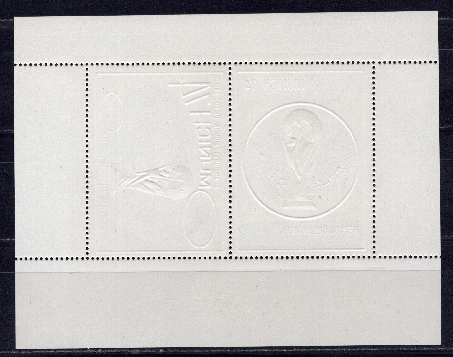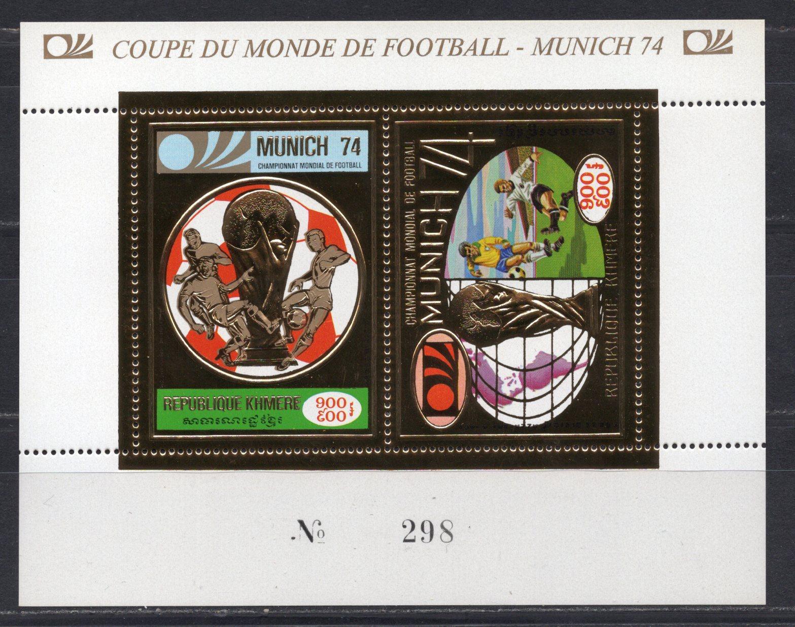 Почтовые марки. Камбоджа, 1973 г. Бл. 36. Чемпионат мира по футболу, ФРГ. Фольга. Золото. (Mi 100,00 €)