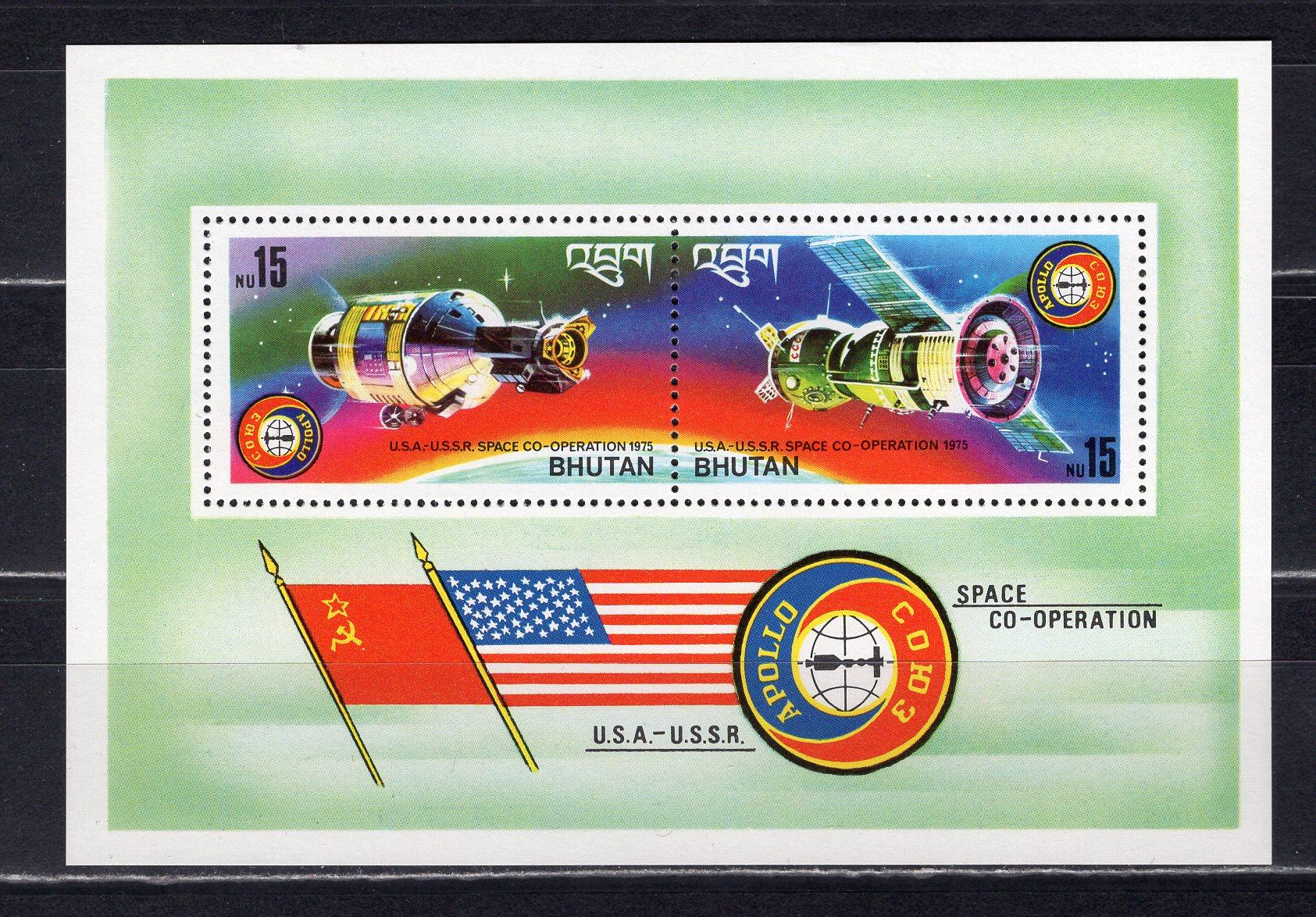 Почтовые марки. Бутан. 1975г. Космос. Союз-Аполлон. Блок №69.