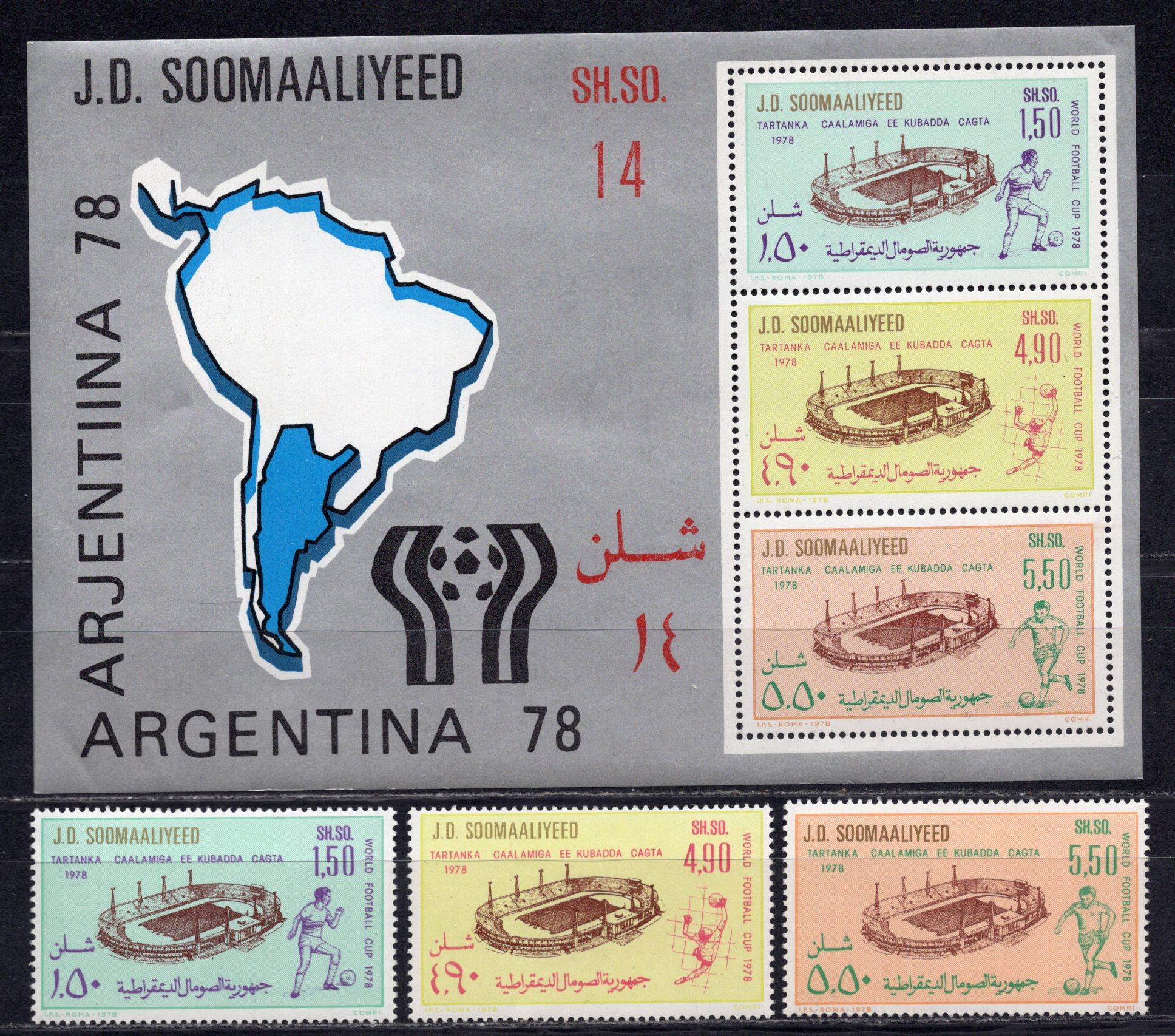 Почтовые марки. Сомали, 1978 г. №263-265. Бл. 6. Футбол. (Mi 29.0 e)