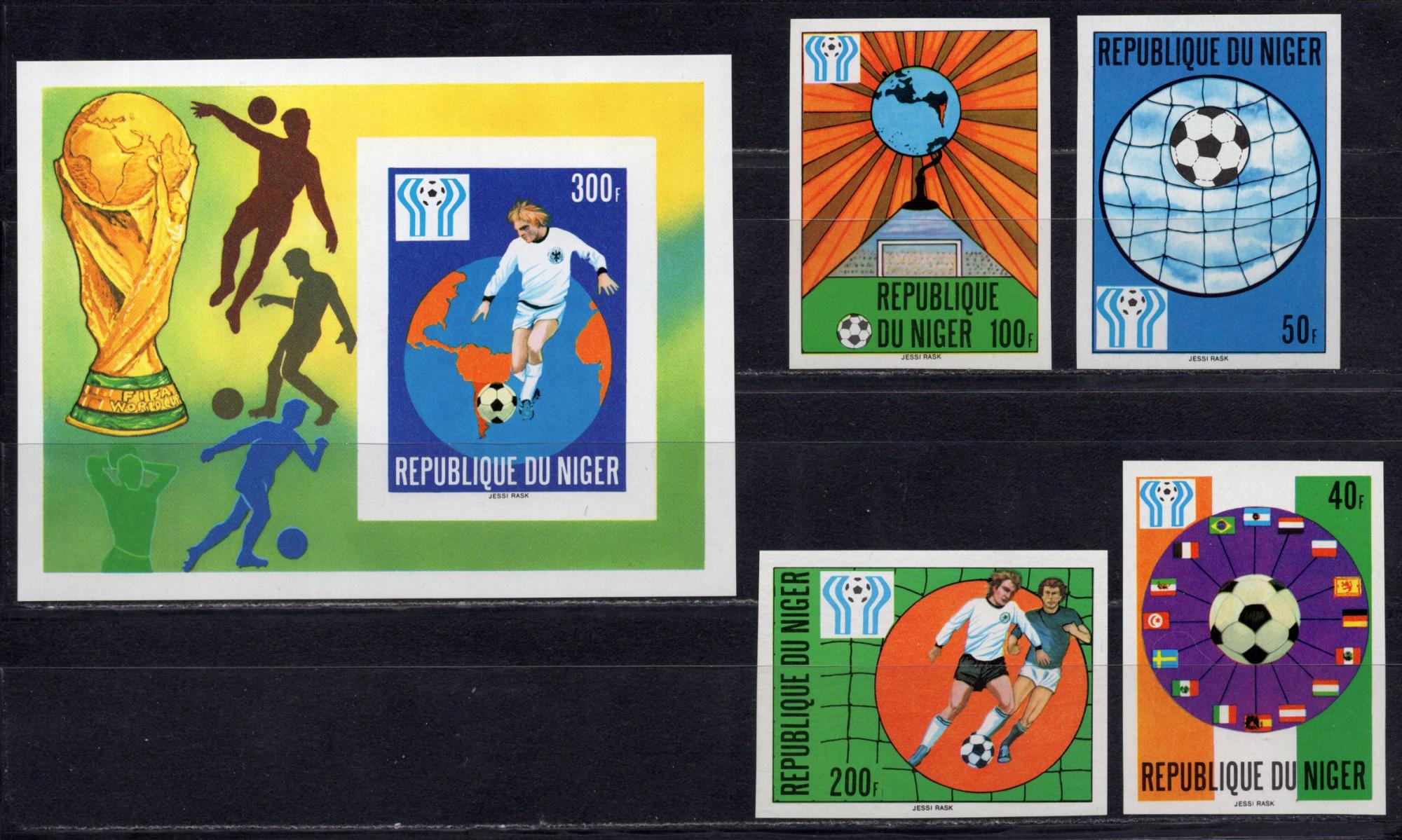 Почтовые марки. Нигер, 1978 г. №619-622B. Бл. 20В. Безз. Футбол.