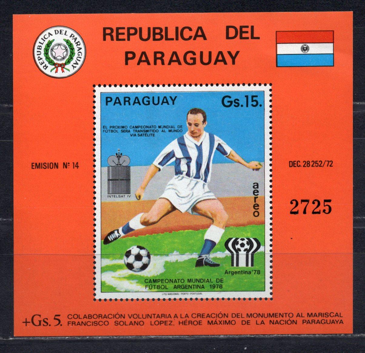 Почтовые марки. Парагвай, 1974 г. Бл. 225. Футбол. (См.сост)