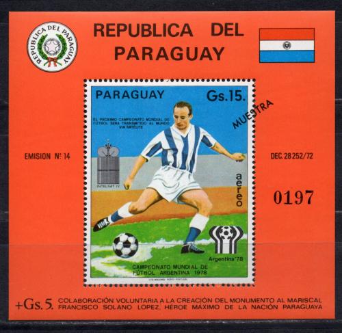 Почтовые марки. Парагвай, 1974 г. Бл.225S. Футбол. Надпечатка. MUESTRA. (Mi 26.0 e)
