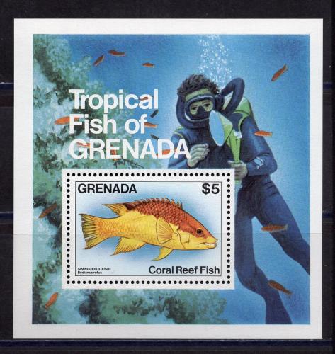 Почтовые марки. Гренада. 1984г. Рыбы. Блок №126 (№1303).
