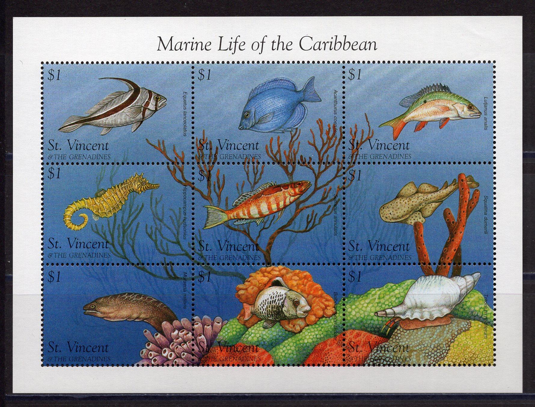 Почтовые марки. Сент-Винсент. 1996г. Морская Фауна. №3685-3693. МЛ.