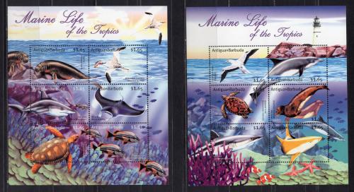 Почтовые марки. Антигуа и Барбуда, 2001 г. №3465-3482 (МЛ), Бл. 504. Морская фауна. (Mi 35.0 e)