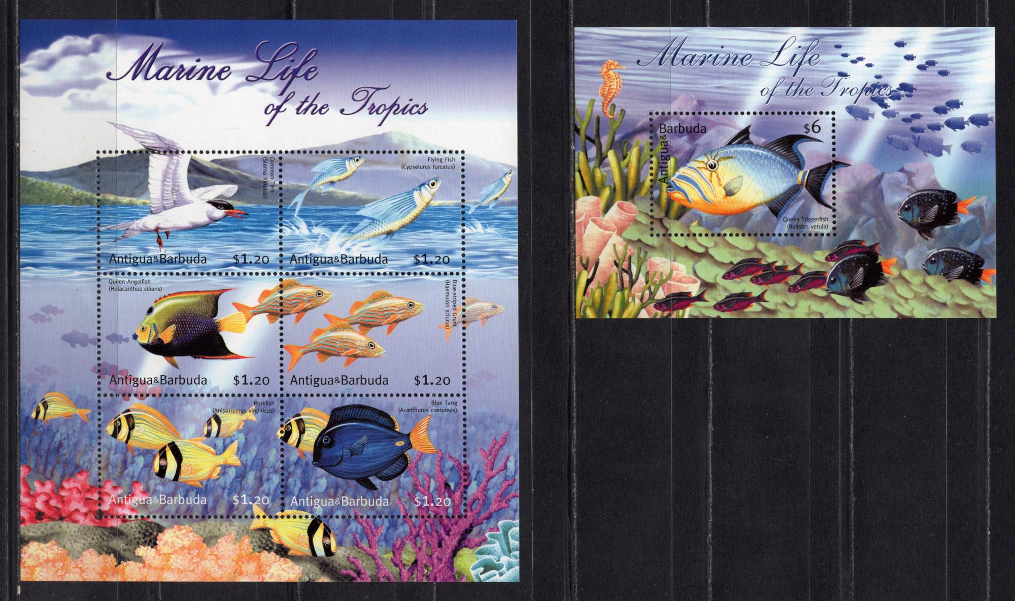 Почтовые марки. Антигуа и Барбуда, 2001 г. №3465-3482 (МЛ), Бл. 504. Морская фауна. (Mi 35.0 e)