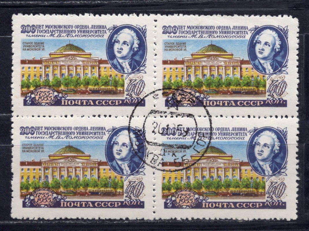 Почтовые марки. СССР, 1955 г. №1837. КБ. 200 лет Московскому государственному университету имени М.В.Ломоносова.