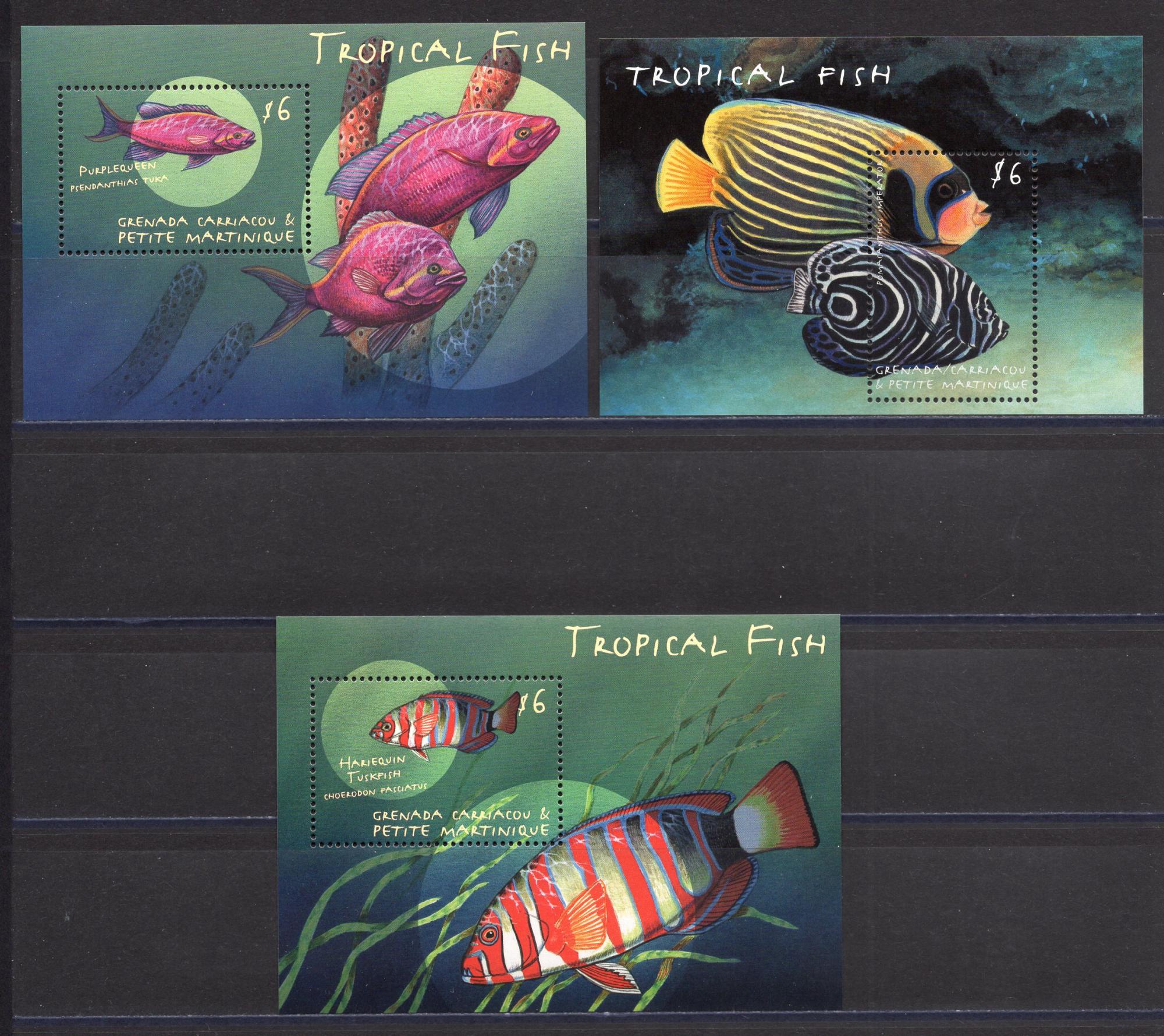 Почтовые марки. Гренада Карриака и Петит Мартиник. 2000г. Рыбы. Блок №458-460 (№3111-3112, №3131).