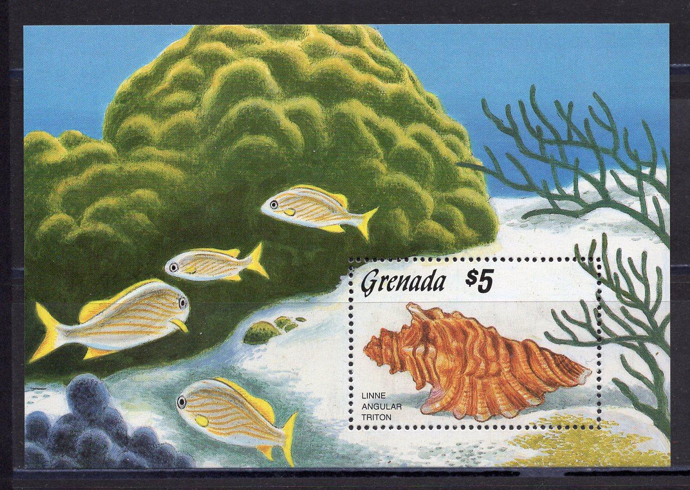 Почтовые марки. Гренада. 1986г. Рыбы. Ракушка. Блок №161 (№1489).