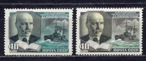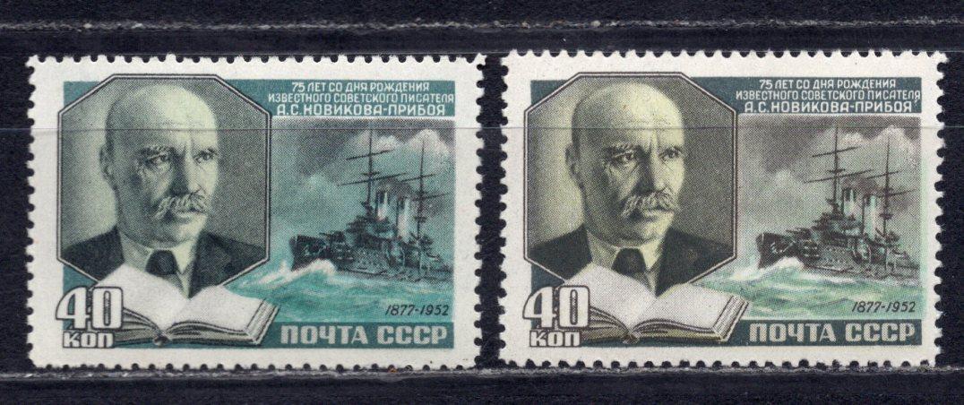 Почтовые марки. СССР, 1952 г. №1684 I и II. 75 лет со дня рождения А.С. Новикова-Прибоя. (Чист. и чист. с накл.)
