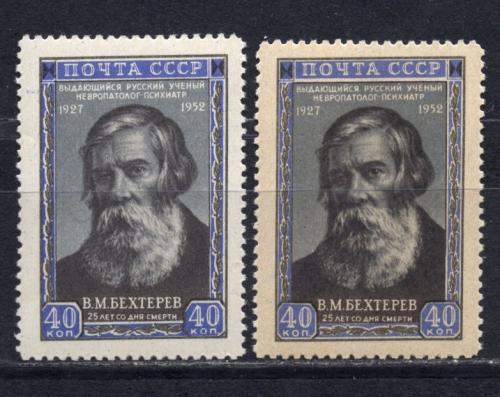 Почтовые марки. СССР, 1952 г. №1714, 1714 а. Бехтерев (с фоном и без).