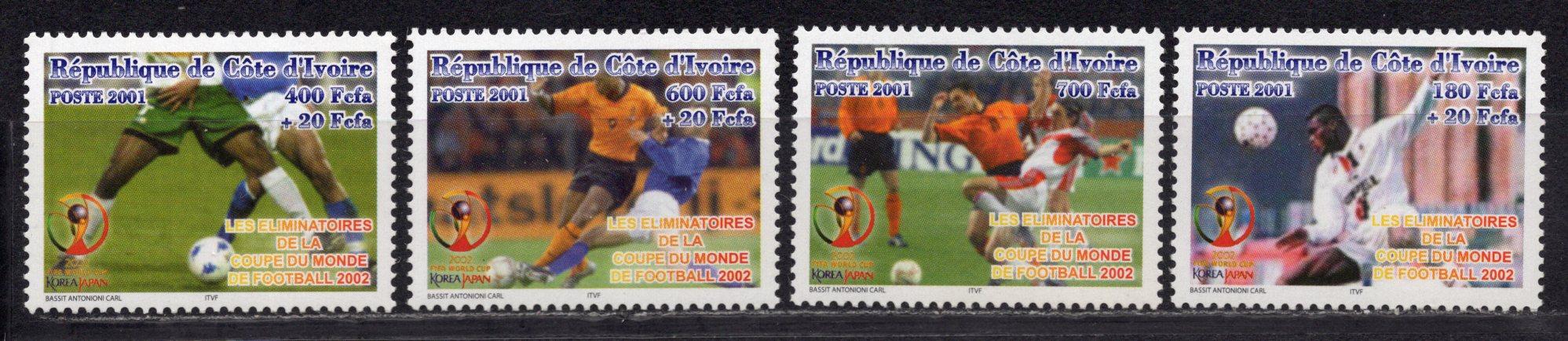 Почтовые марки. Кот-д’Ивуар, 2001 г. №1278-81. Футбол.